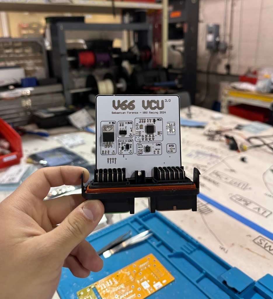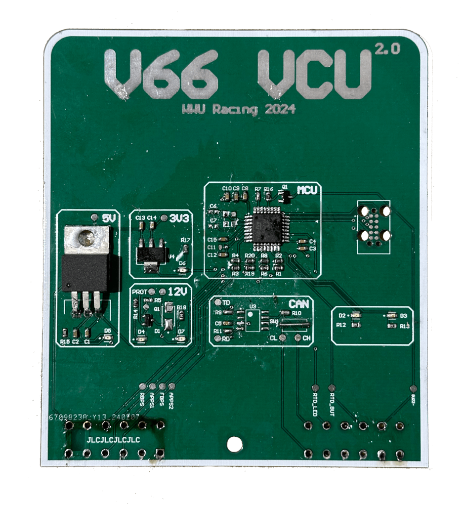 The board looks pretty rough in this picture but its just because it was tested on a lot. Almost everything worked on the board, the only problem was the analog inputs, they were 5V logic when the MCU can only handle 3.3V logic, so it got fried instantly when signals were plugged in. Aside from that, the board was able to be programmed, the power worked, the CAN bus worked. In the next version, all these problems will be fixed.